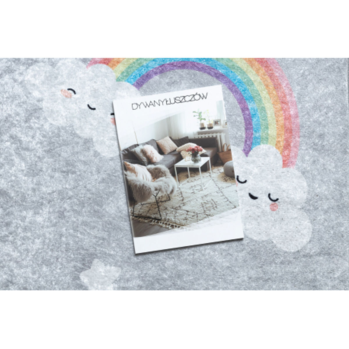 Ravivez la chambre des enfants avec le tapis coloré et ludique JUNIOR au motif d'arc-en-ciel et de nuages. La finition grise élégante complétée par un motif joyeux stimule l'imagination des enfants et apporte joie et confort à l'espace. Le tapis est doux et agréable au toucher, sécurisé grâce à son dessous antidérapant et facile à entretenir – il peut être lavé en machine. Un excellent choix pour une salle de jeux, une chambre d'enfant ou un coin détente.