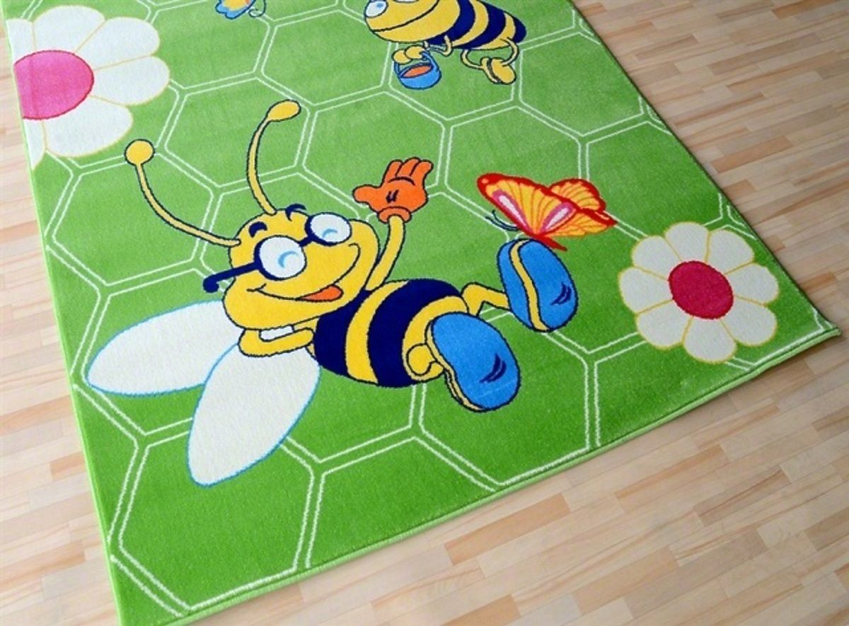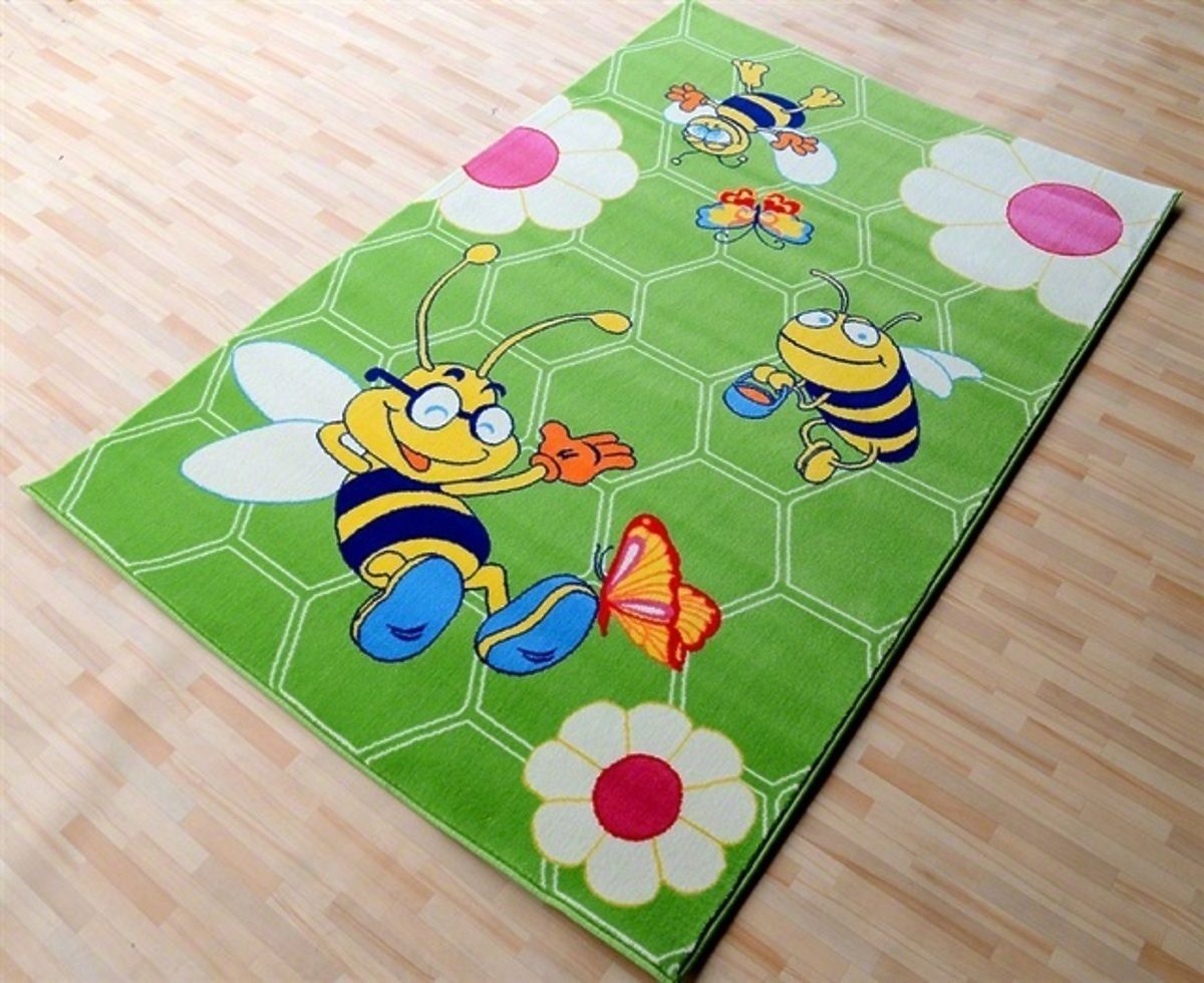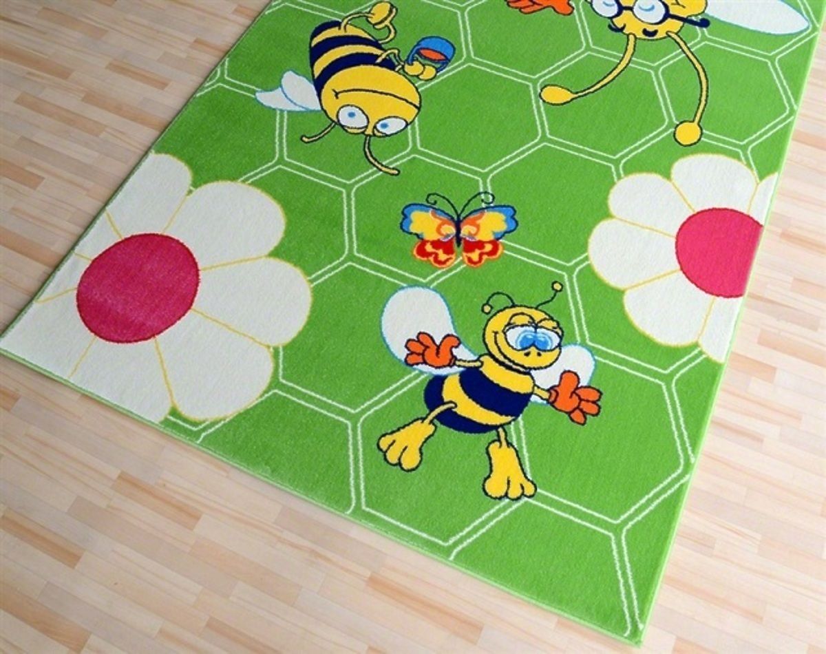 Les abeilles à thème semble très glamour, parfaitement adapté aux filles et aux garçons dans la chambre. Abeilles Merry sur tapis enfants égayer la chambre de tout enfant et se complètent admirablement. Tapis pour enfants verts est décoré dans des couleurs riches. fond vert est abeilles motifs, des fleurs et des papillons. Il est fabriqué à partir de fils. - Hauteur de la Pile: 1,2 cm - Poids tapis: 2100 g / m2