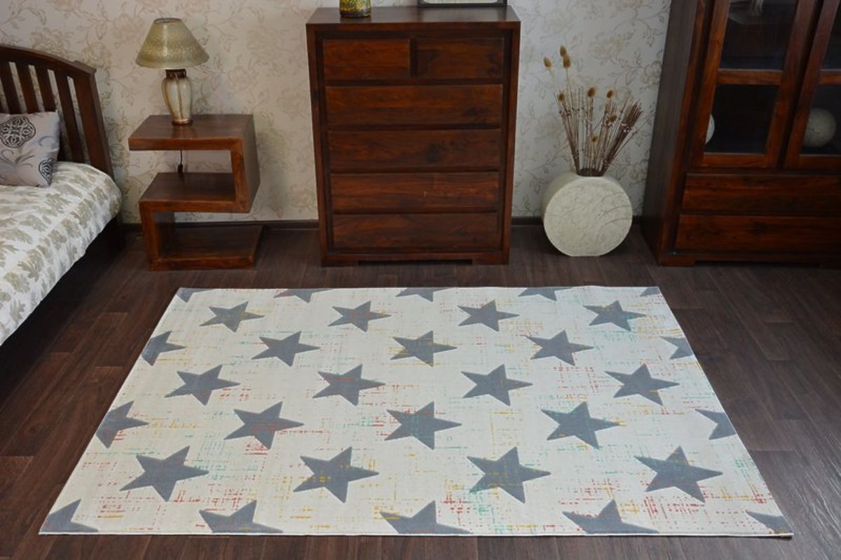 Le tapis est équipé d’étoiles grises qui sont simples. Cela rend les tapis pour enfants universelle et s’intègre dans tous les intérieurs, non seulement pour les chambres des enfants, mais aussi à l’intérieur pour les adultes.