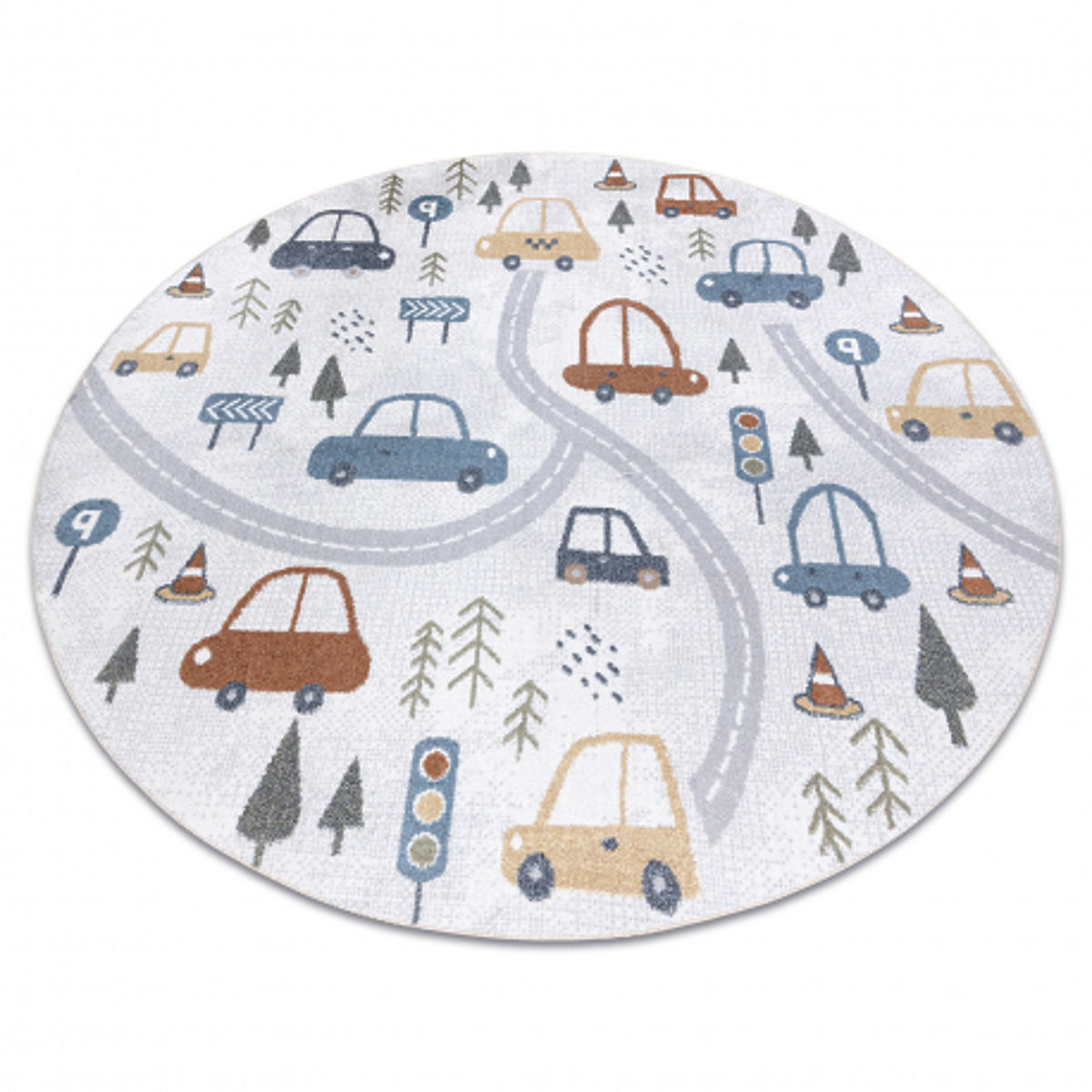 Banaby.fr » Meubles pour enfants / Tapis enfant / Tapis enfant à l'unité / Tapis BONO 8436 rond Voitures, rues crème / gris clair