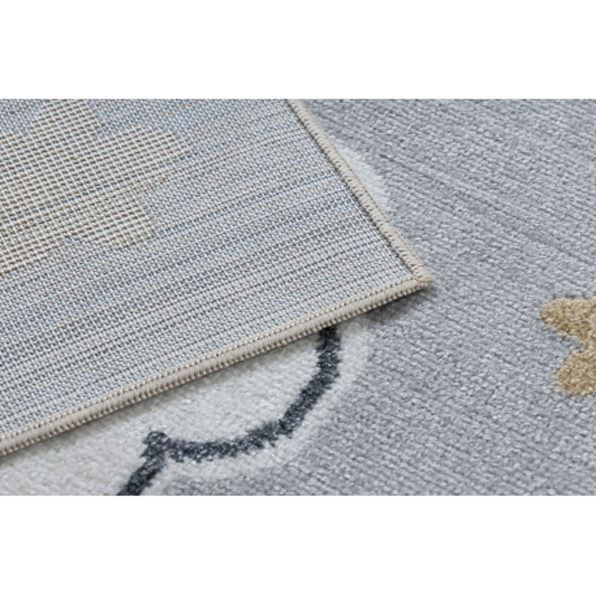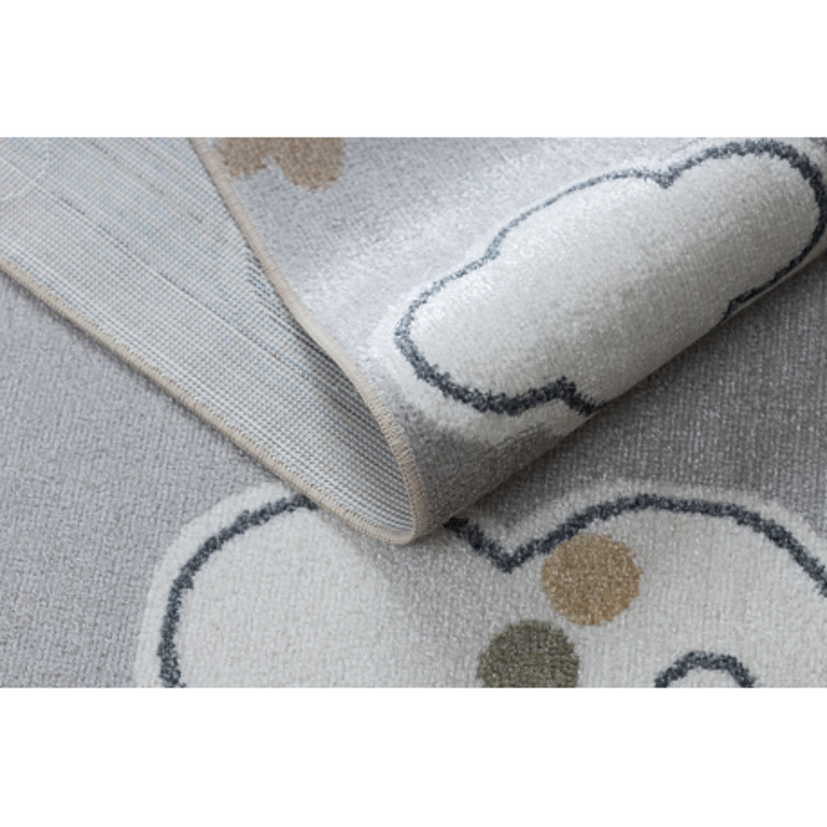 Le tapis rectangulaire BONO 8437 Nuages et ciel apporte douceur, calme et harmonie à la chambre d'enfant. Le fond gris clair combiné avec des détails crème crée une apparence apaisante et élégante qui s'intègre facilement dans les intérieurs modernes et classiques.