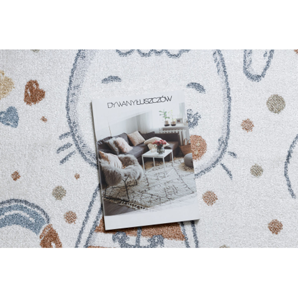 Le tapis rond adorable BONO 8441 Lapin marin apporte une atmosphère magique d'aventure et de jeu dans la chambre d'enfant. La combinaison du fond crème et des détails bleus crée une apparence douce et apaisante qui complète magnifiquement les intérieurs des garçons et des filles.