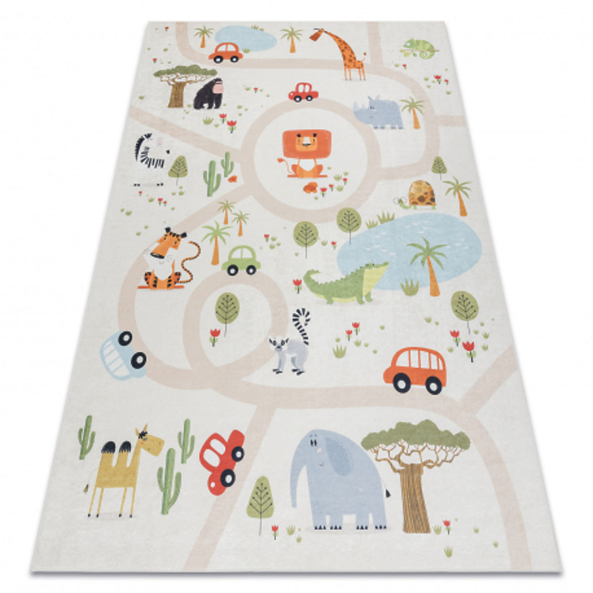 Tapis rectangulaire BAMBINO motif zoo, antidérapant et lavable. .. plus