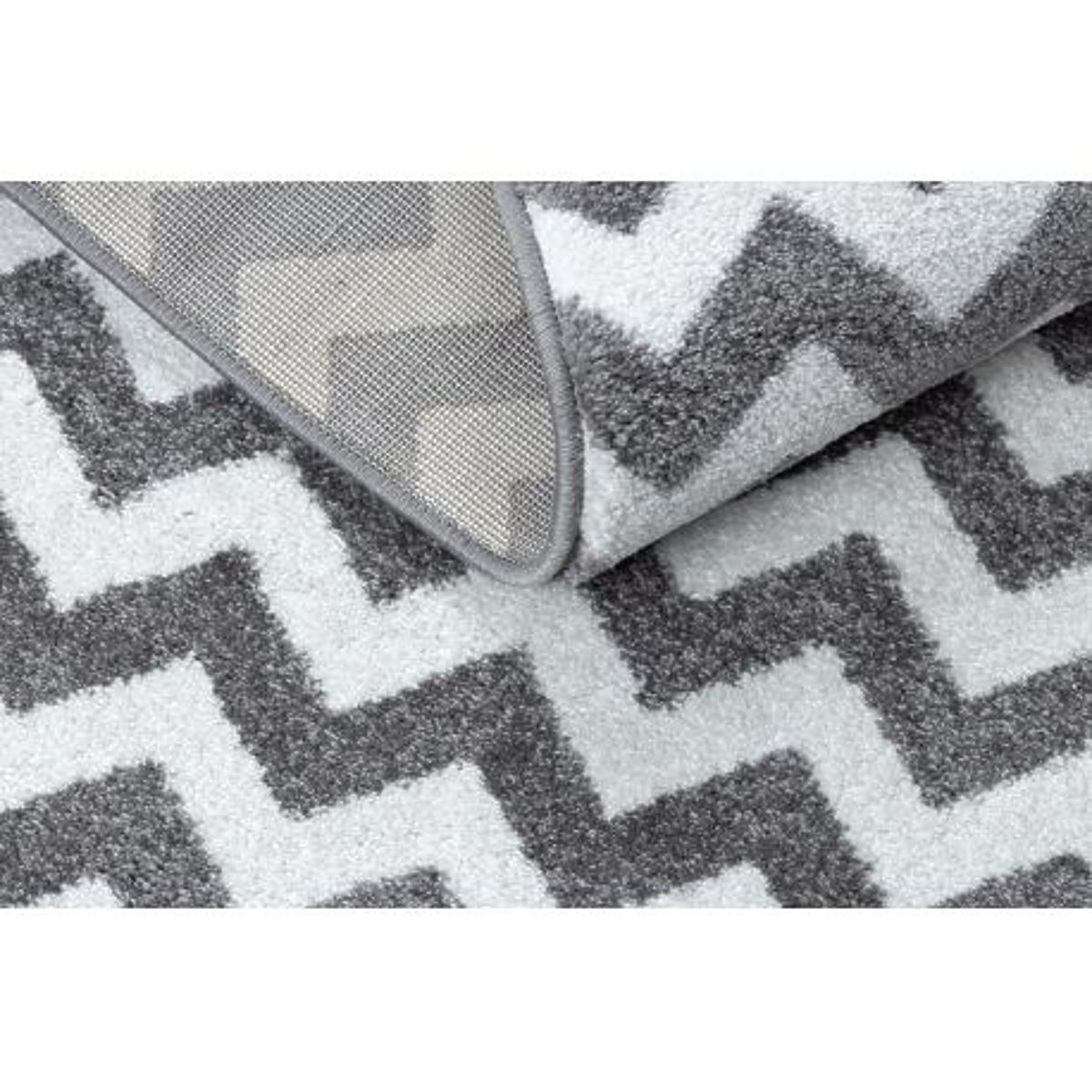 Tapis rond gris blanc avec motifs zigzag modernes. .. plus