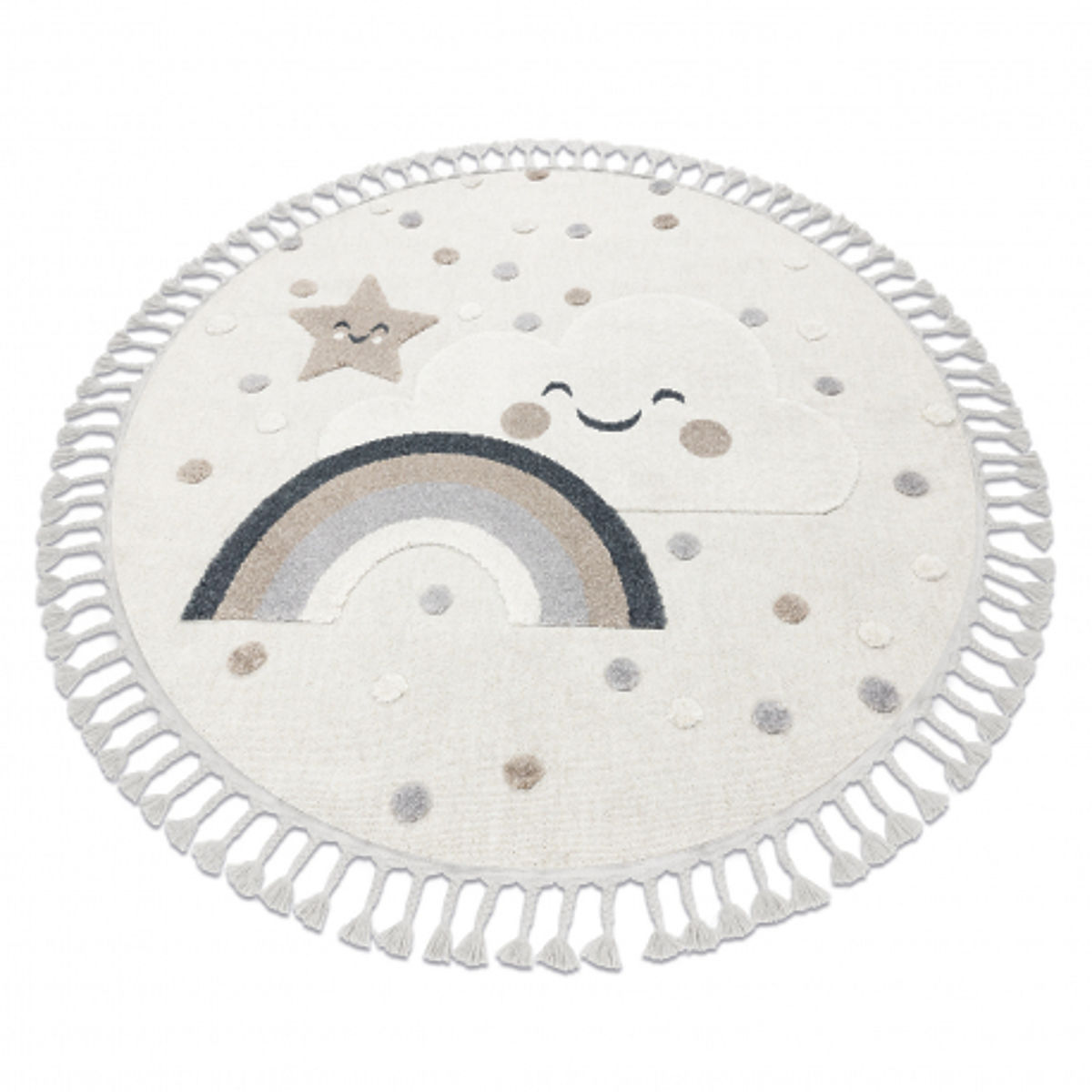 Banaby.fr » Meubles pour enfants / Tapis enfant / Tapis enfant à l'unité / Tapis rond YOYO EY78 blanc / beige - Nuage, Arc-en-ciel, points pour enfants, structurel, sensoriel