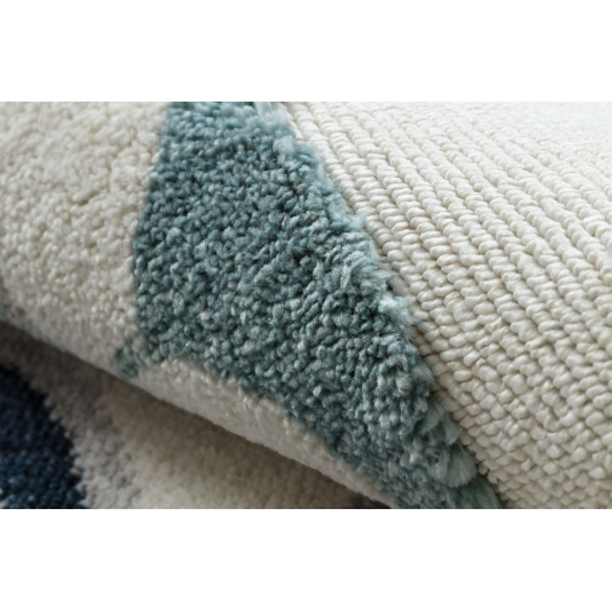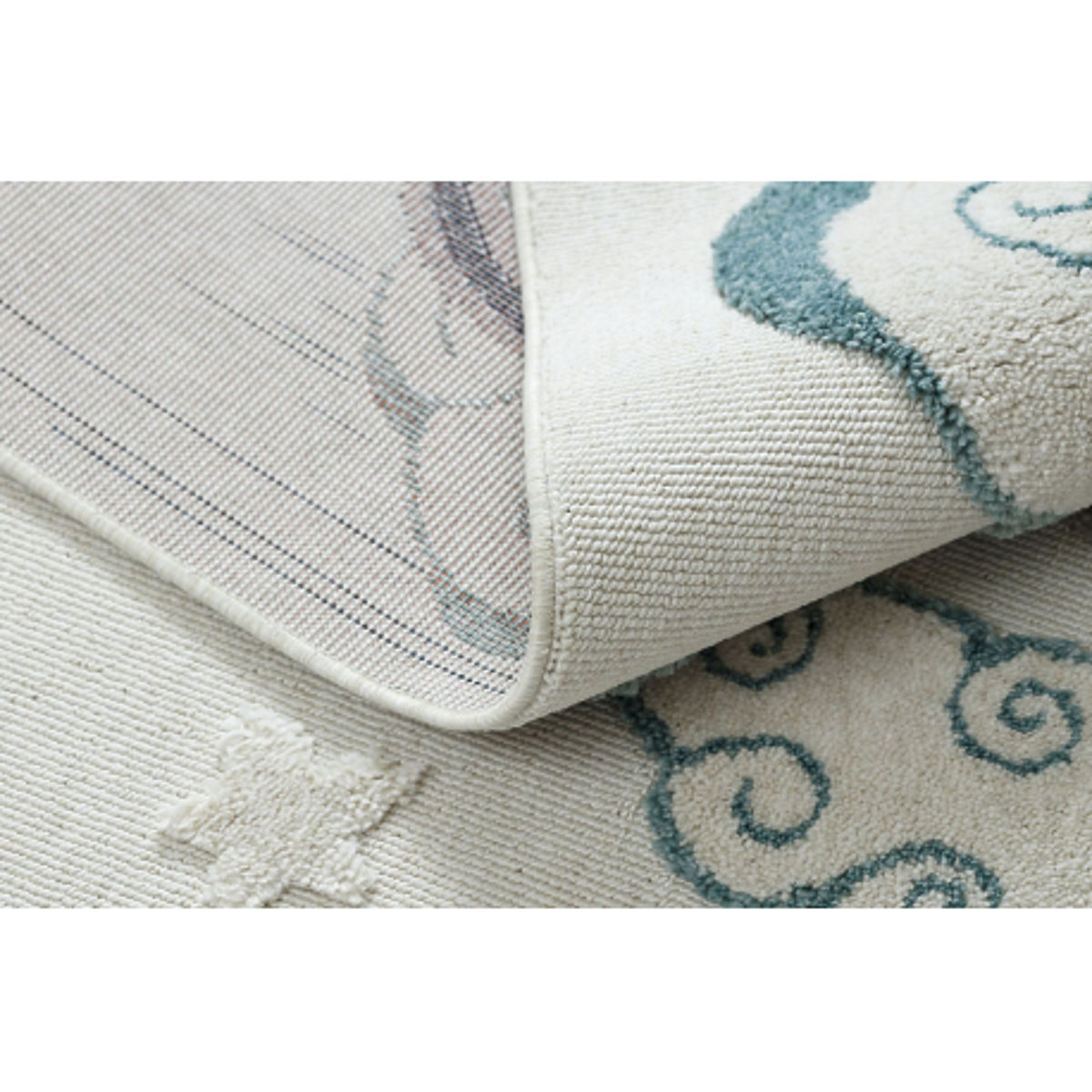 Le tapis a une surface structurée avec des franges, ce qui favorise l'expérience tactile et visuelle et stimule la créativité et la curiosité des enfants. Grâce au fil de polyester de qualité, le tapis est doux, léger et facile à entretenir. L'épaisseur du tapis varie entre 8 mm et 16 mm, offrant confort pour jouer et se reposer. Le poids dépend du motif et varie entre 2,0–2,50 kg/m².