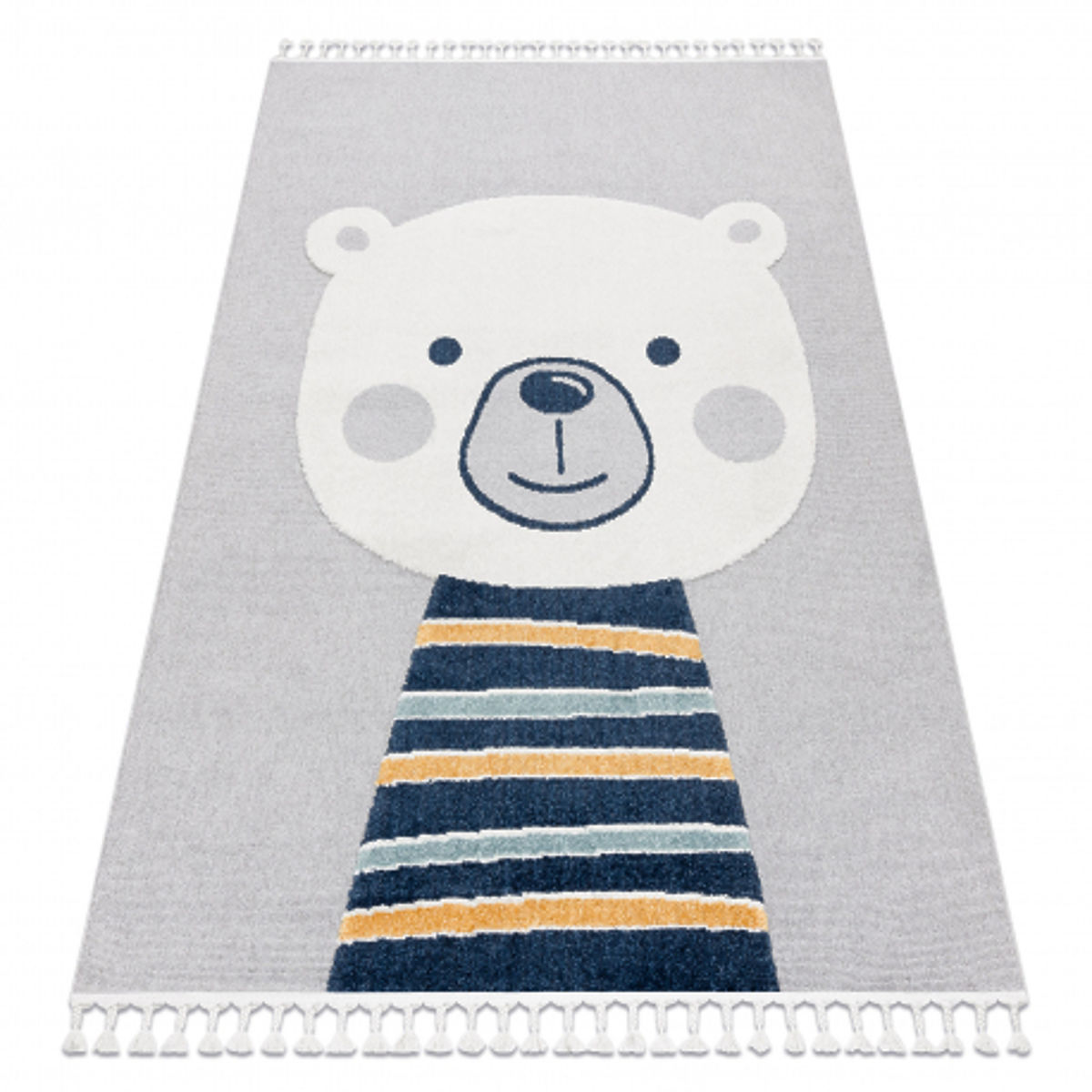 Banaby.fr » Meubles pour enfants / Tapis enfant / Tapis enfant à l'unité / Tapis YOYO GD50 gris / blanc - Ourson pour enfants, structurel, sensoriel Franges