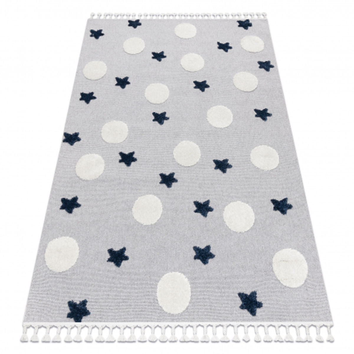 Banaby.fr » Meubles pour enfants / Tapis enfant / Tapis enfant à l'unité / Tapis YOYO GD75 gris / blanc - étoiles, cercles pour enfants, structurel, sensoriel Franges