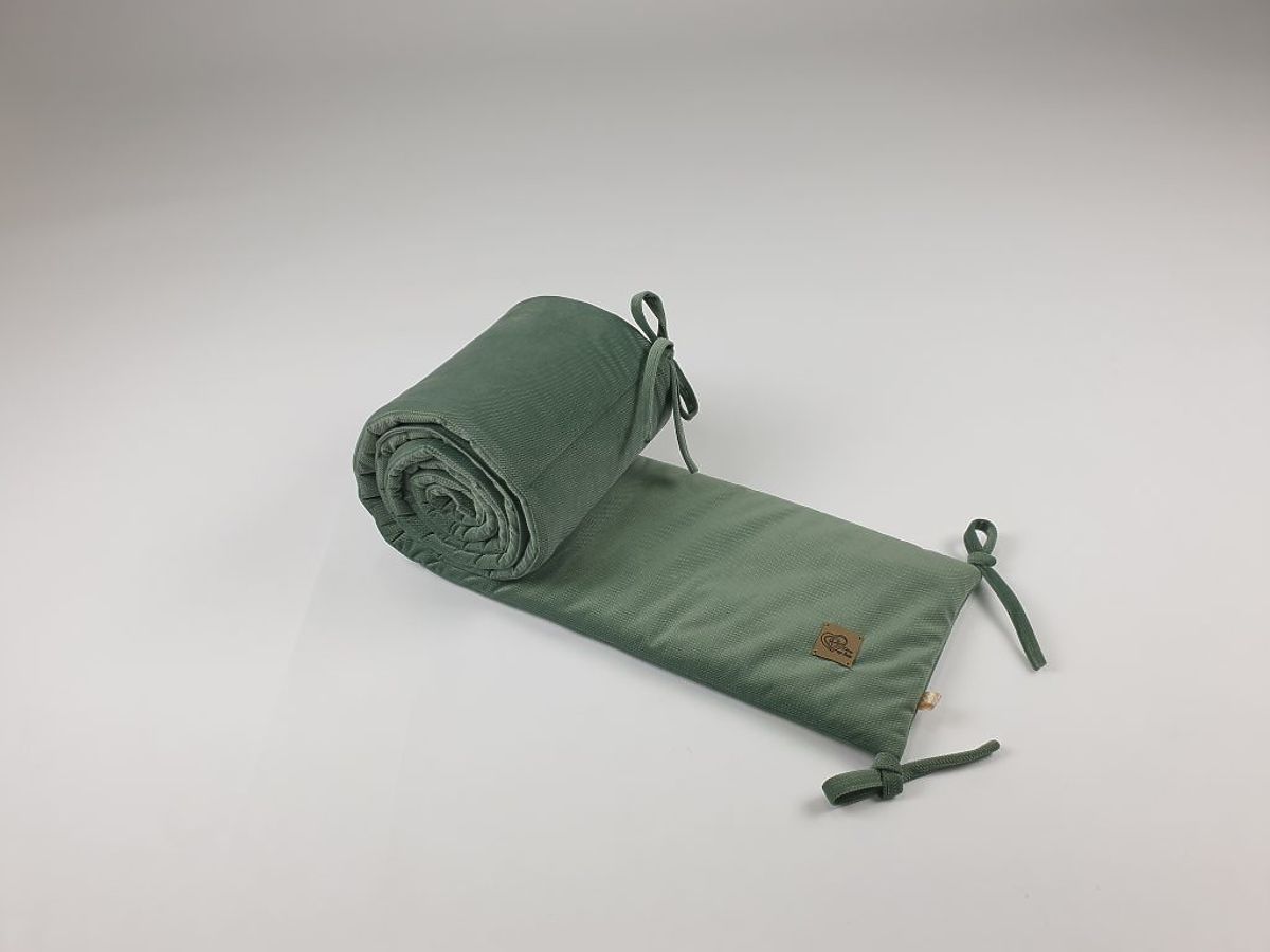 Un tour de lit protecteur élégant en velours lisse, qui assure le confort et la sécurité de votre bébé. Il se fixe facilement aux barreaux et reste fermement en place.