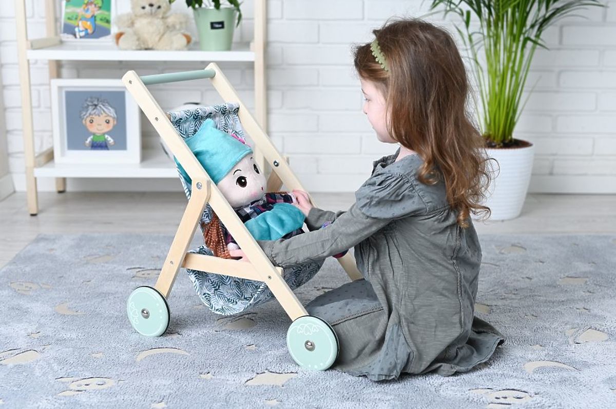 La poussette légère en bois pour poupées est une nouvelle création d'AdamToys pour les promenades estivales des tout-petits avec leurs poupées préférées. .. plus